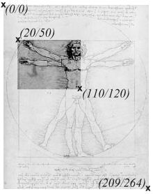 <ilayer left=0 top=0 clip="20,50,110,120"> <img src="davinci.jpg" width=209 height=264> </ilayer>(I have added left=0 and top=0 as my Netscape version (PR3 on WinNT) seems to have some problems if these values are missing)